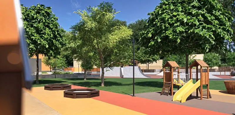 Seamless integration of play equipment, fitness stations, and street furniture within landscape design, maintaining consistent material palette. Collaboration Highlights: