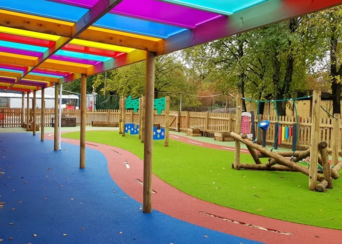 Full outdoor learning environment including play, fitness, and nature play zones. Staged installation over two holiday periods.