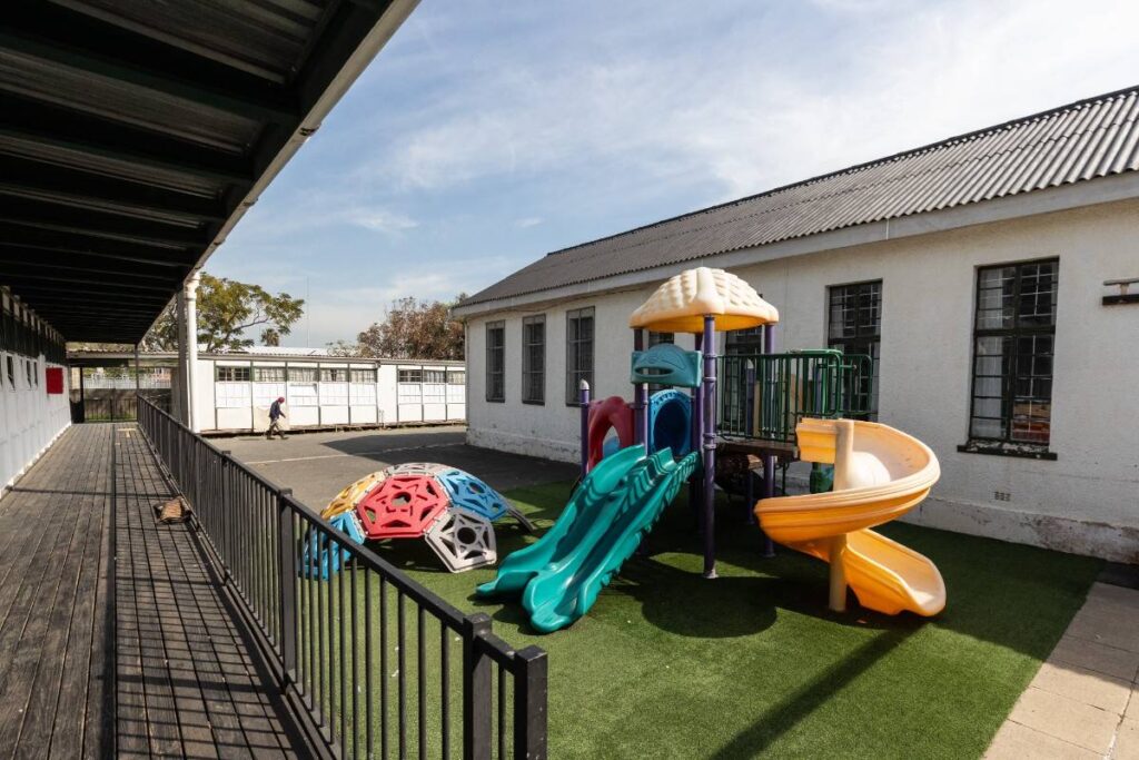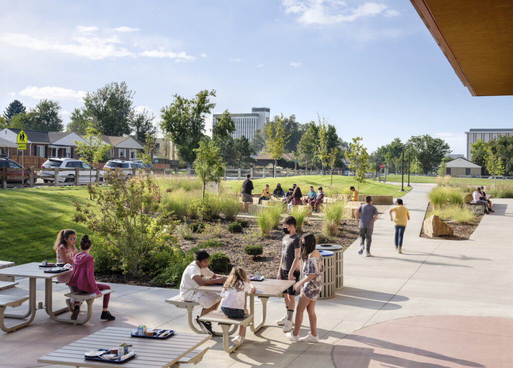 Wheelchair-accessible play equipment and sensory elements allowing students of all abilities to play together. Positive impact on school culture.