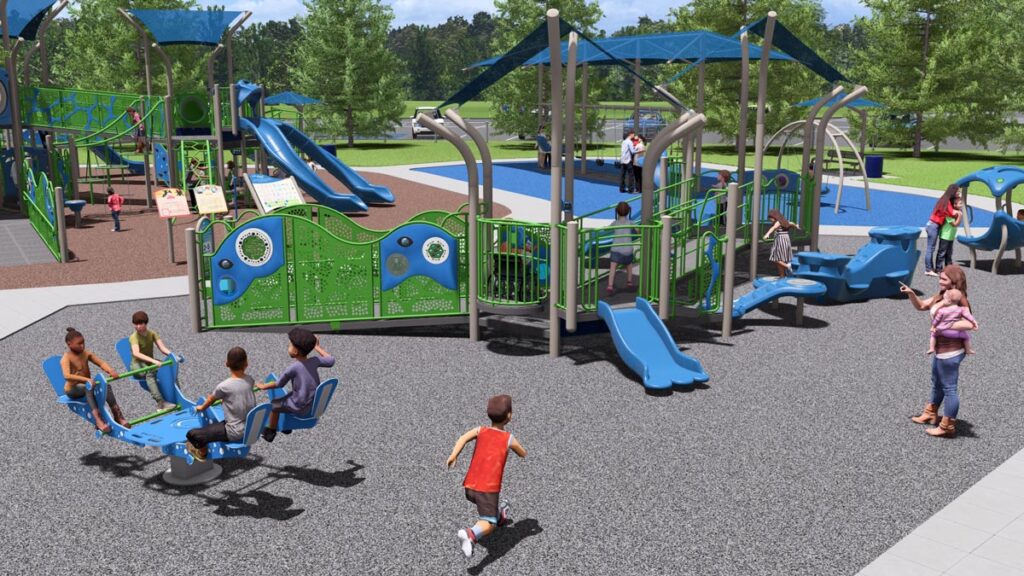 Wheelchair-accessible ramps, sensory play elements, and designs that allow children of all abilities to play together.